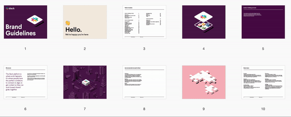 …like a very high-level 50-page PDF on slack.com and roughly 10,000 documents created in different formats and owned by different people for every individual element of our brand. Our “system” was inefficient and tedious to update and share, especially as Slack grew and we began to bring in more agencies and outside partners to take on more work.